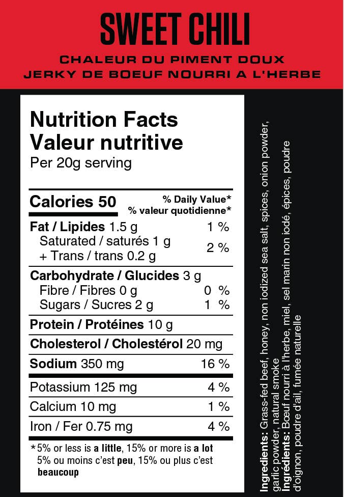 Sweet Chili Heat Jerky Bars Fuel your day with the perfect balance of sweet and spicy! Our Sweet Chili Heat Jerky Bars are made with just a few clean, simple ingredients: grass-fed beef, sea salt, honey, and a touch of spice. Packed with protein and free from unnecessary fillers, they're a wholesome snack that tastes as good as it is for you. Whether you're packing lunches for the kids, tossing snacks into a gym bag, or fueling up between games, these jerky bars are a convenient, mess-free option the whole family will love. Healthy snacking has never been this easy—or this delicious! Grass-Fed Beef Sweetened with Honey No added Nitrites Low Sugar Made with simple ingredients you CAN Pronounce!