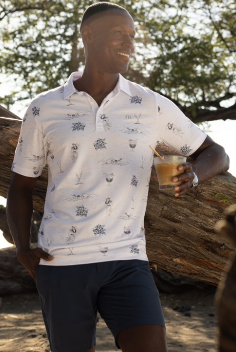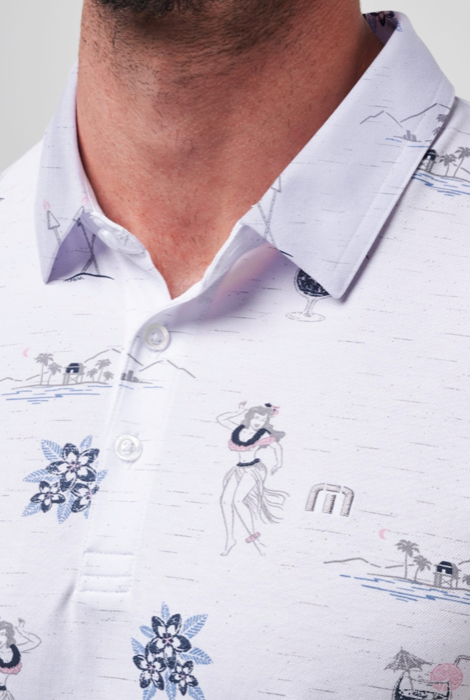 Consider this polo your little piece of ISLAND PARADISE. Literally. We named the polo that, just so you could tell people you own an island paradise. And with an all-over print featuring graphics like cocktails, tiki torches, and hula dancers, you basically do. You’re welcome.