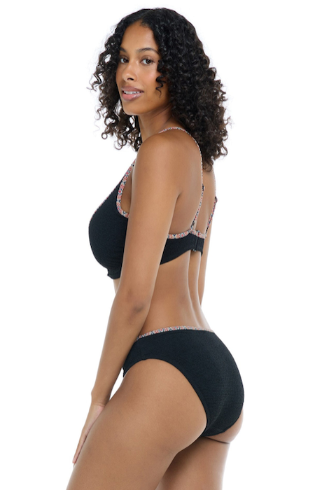 Elevate your swim ensemble with our Mid Waist bottom. Classic yet alluring, it features a traditional rise and delicate lace trim. The front power mesh ensures a confident silhouette, while providing the coverage you desire.