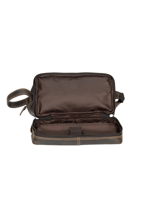 This leather toiletry bag consists of 1 large main compartment. This closes with a sturdy zipper. On the inside there are several compartments to store your belongings well-ordered and conveniently. This toiletry bag closes with a zipper.