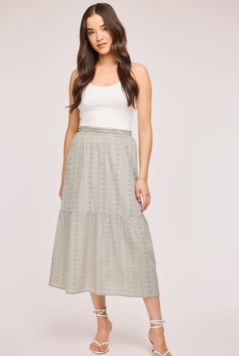 Gentle Fawn Madrid Eyelit Midi Skirt - Aloe