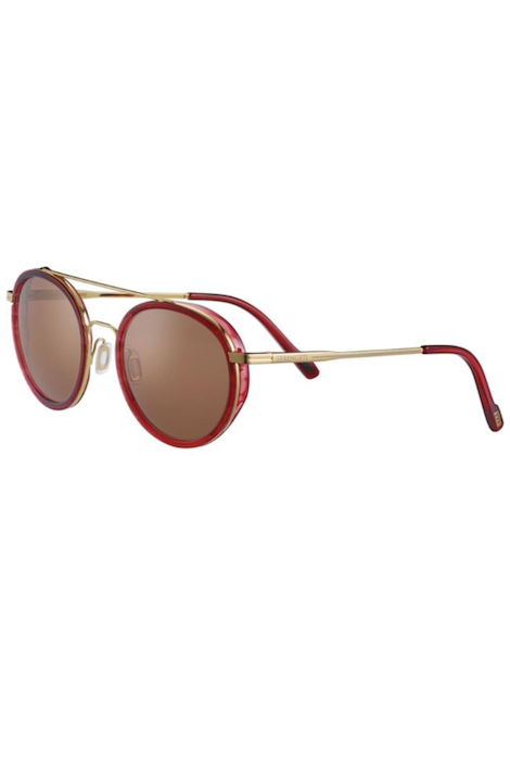 Serengeti Geary - Red Streaky Acetate With Bold Gold/Mineral Polarized Drivers Gold