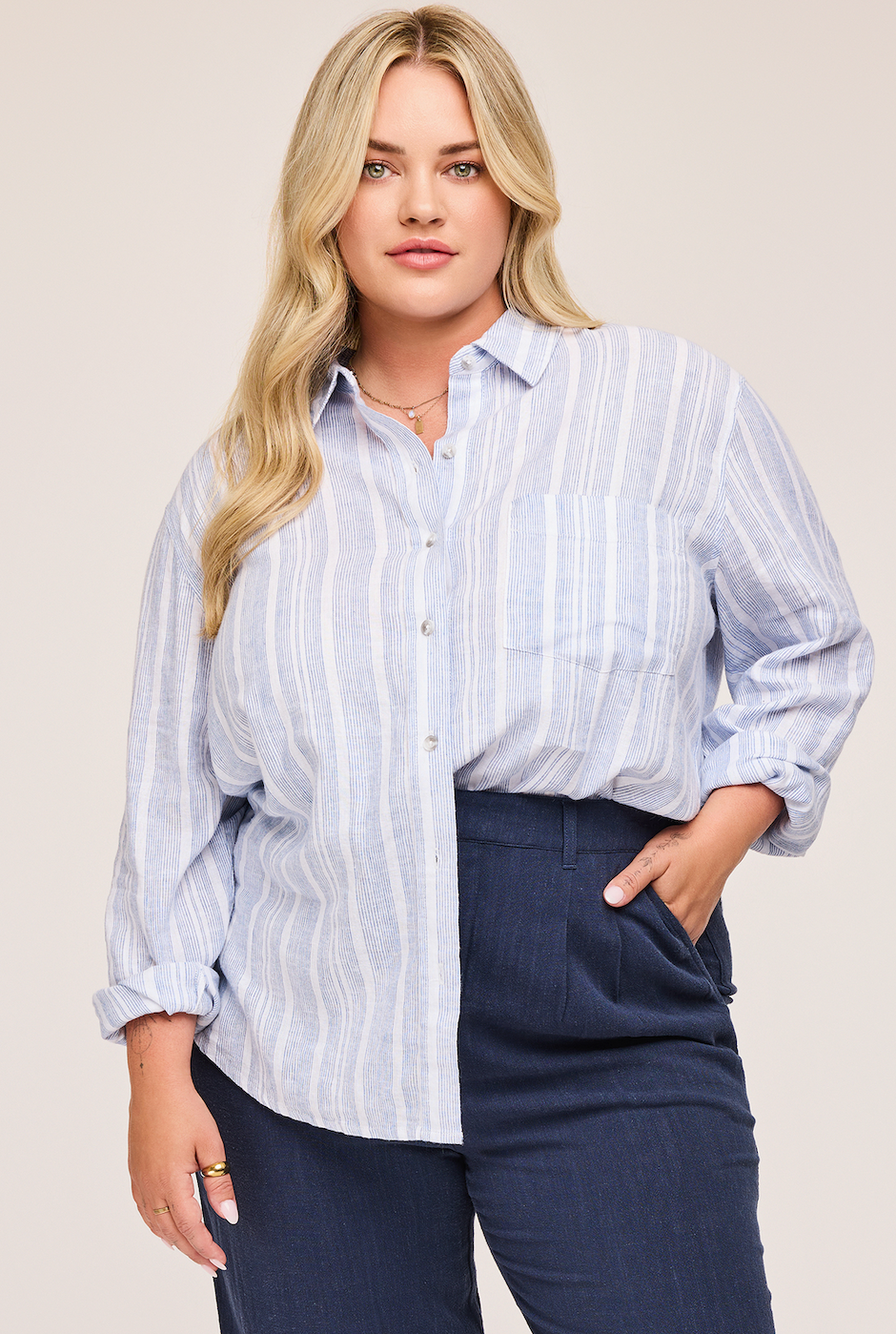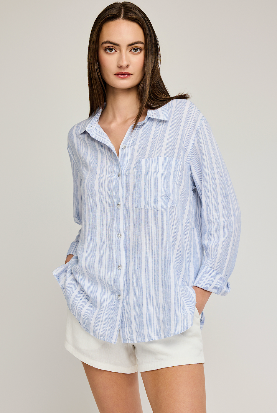 Gentle Fawn Luka Button Down Shirt - Blue Stripe