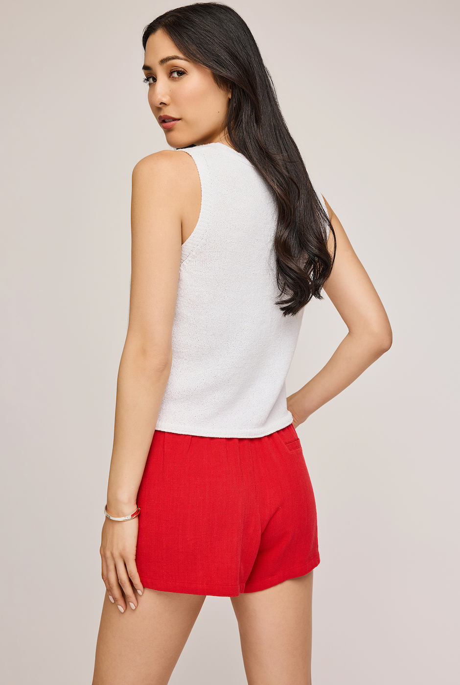 The Suki short is made of a linen blend for an effortless look and feel. Features include an elasticated waistband with adjustable drawcord and side slits. Complete the look with the Jules tank or your favourite t-shirt.