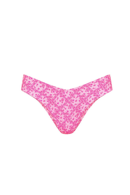 This is a cheeky tanning bottom that offers a bit more front and side fabric coverage for those who don't want a super slim style. Kulani customers love the distinct 'V' shape cut that allows you to raise higher on the hips - creating the illusion of longer legs!