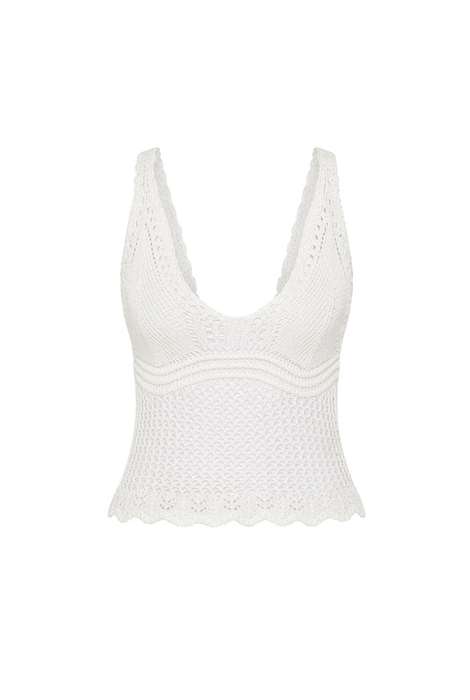 This dreamy summer knit cami is a versatile new favorite from our crochet story, designed in a soft vanilla hue. With beautiful bust-shaping details and an effortless fit, it’s perfect for beach days, casual outings, or romantic date nights!