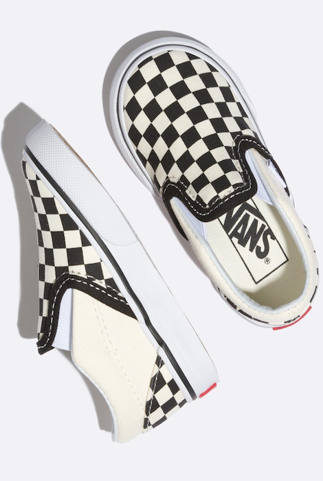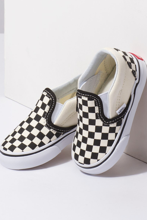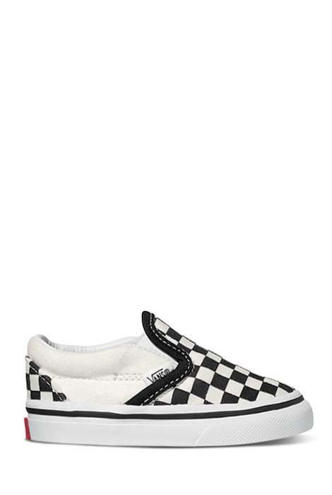 Keep their style in check with new Slip On Checkerboard Skate Shoe from Vans! This iconic slip-on sneaker sports a classic low profile design with signature checkerboard prints and vulcanized sole construction. Your kids will love the style and comfort! The easy on, east off elastic side makes them a quick and simple shoe for parents and the durable canvas and waffle sole will keep parents and their wallets happy. Perfect shoes for school or playtime!